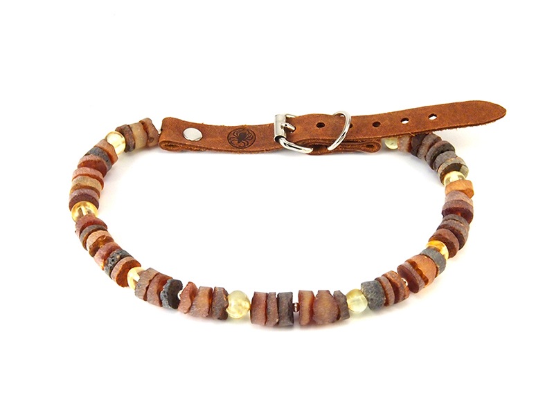 Obojek s minerály baltský jantar s koženým páskem a nerezovou přezkou