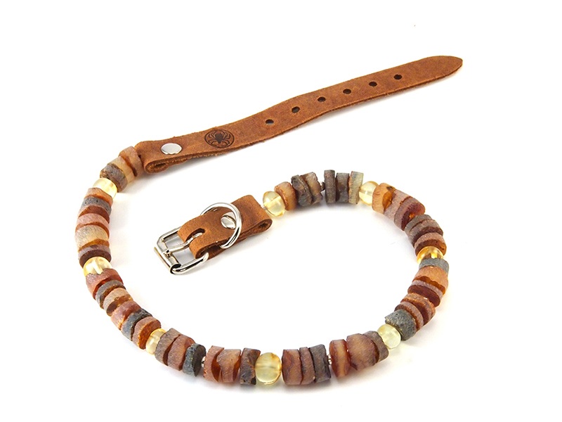 Obsah balení: 1 ks jantarový obojek s koženou přezkou a nerezovou sponou, český návod k použití