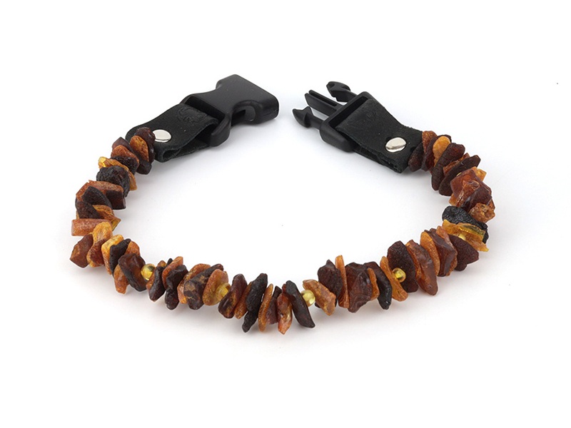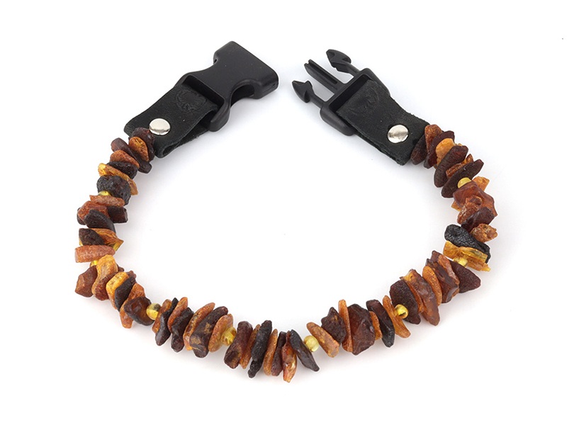 Materiál: přírodní minerál baltský jantar, černá přírodní kůže, černá rychlozapínací TPR spona