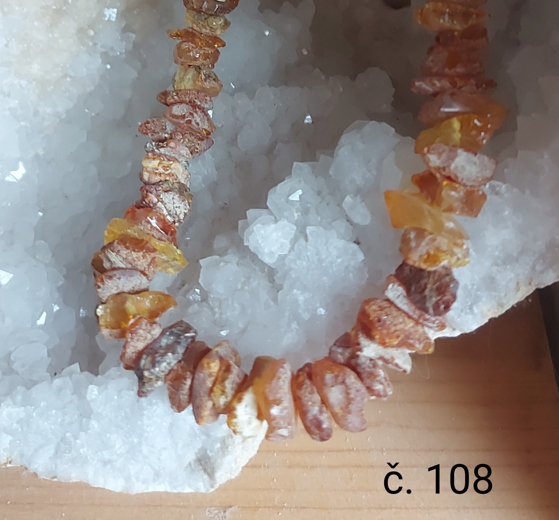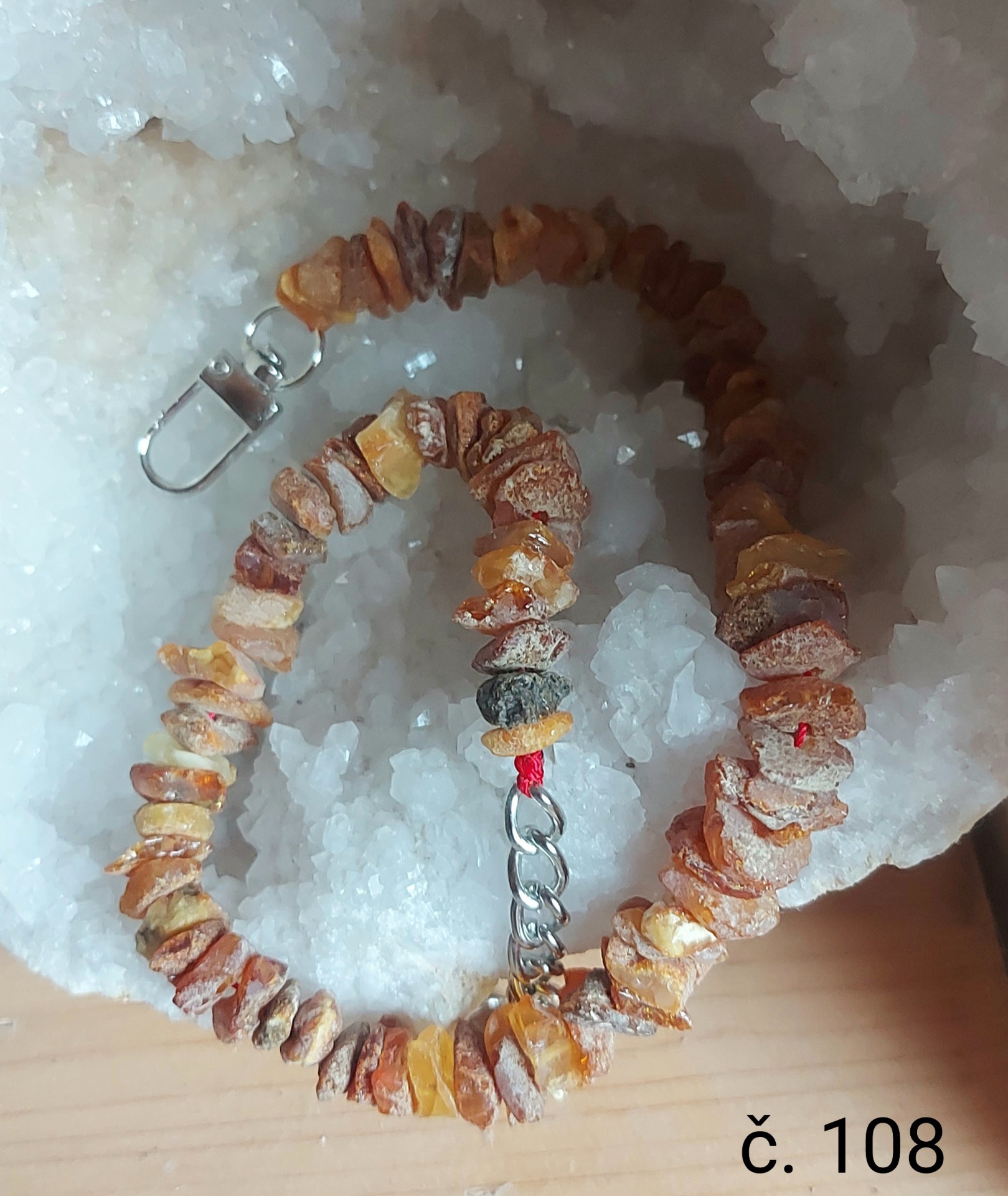 Obojek s minerály baltský jantar s nerezovým řetízkem a nerezovou přezkou