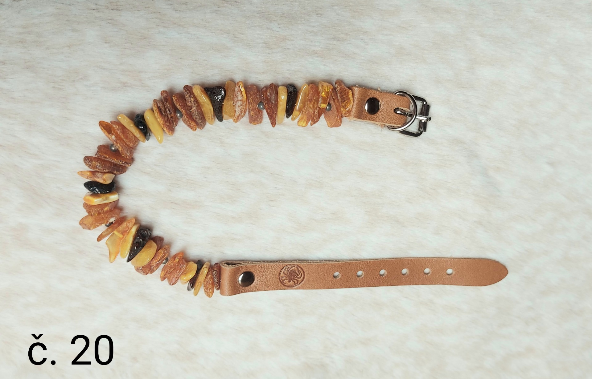 Obojek s minerály baltský jantar s koženým páskem a nerezovou přezkou