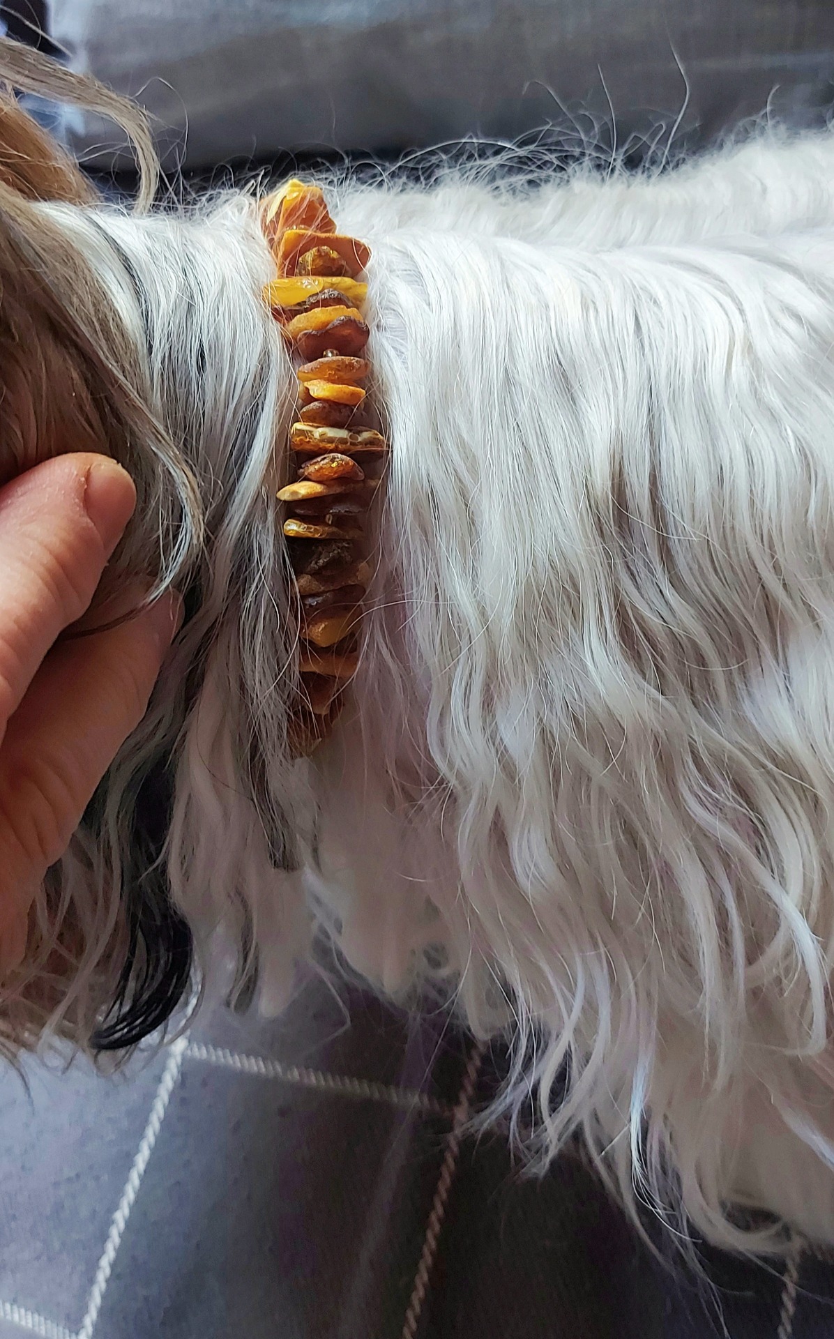 Vzhledem k tomu, že jantar je zkamenělá pryskyřice, která obsahuje aromatické látky, které klíšťata a blechy nesnášejí, tak obojek z baltského jantaru spolehlivě a hlavně bez chemie ochrání Vašeho psa