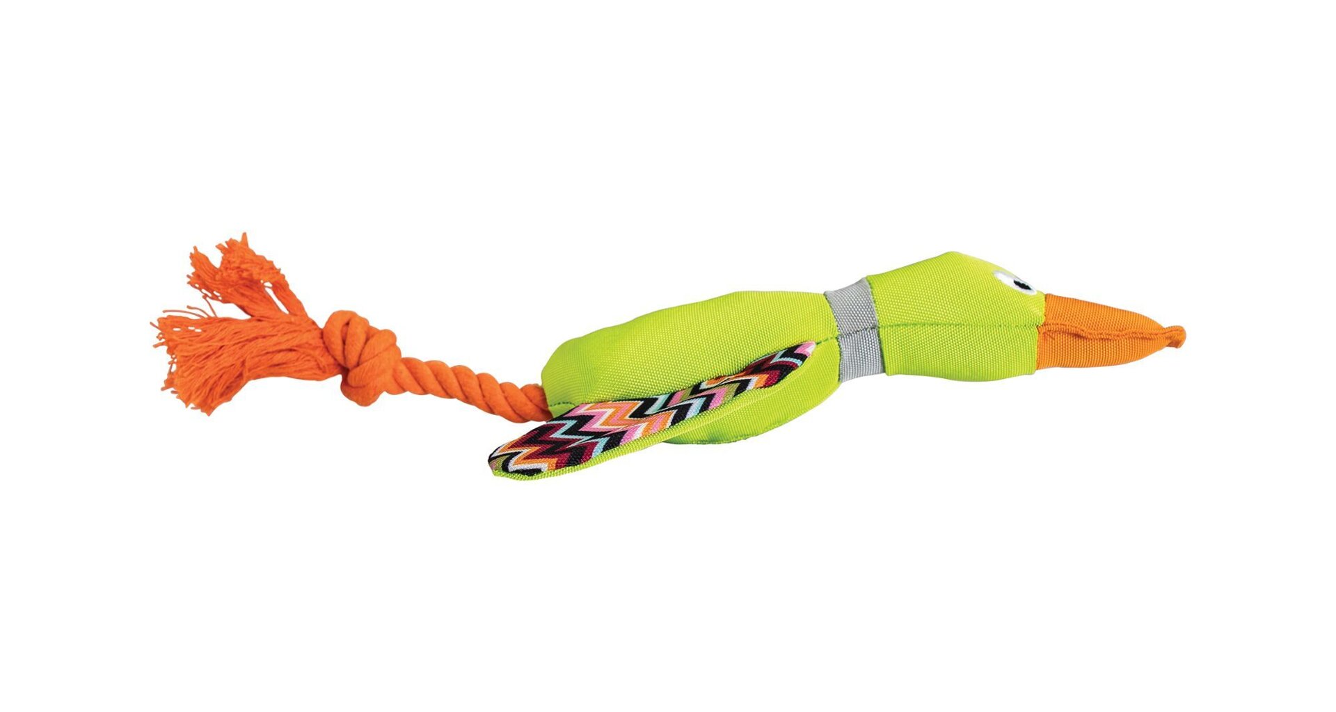 Hračka má pevný, kvalitní odolný materiál a bavlněné lano, které může pes žvýkat