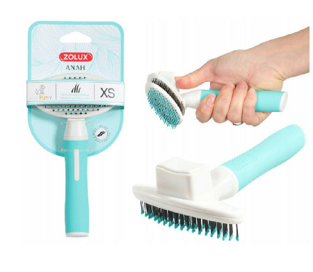 Jemný kartáč ANAH Zolux se díky svým pružným zasouvacím hrotům s plastovými konci, které jsou pro psy a kočky jemnější, používá pro jemné vyčesávání spodní vrstvy srsti. Díky speciálnímu zasouvacímu systému se kartáč snadno používá a čistí
