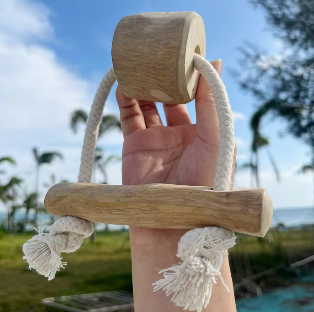 Materiál: 100% přírodní kávovníkové dřevo, 100% bavlněné lano