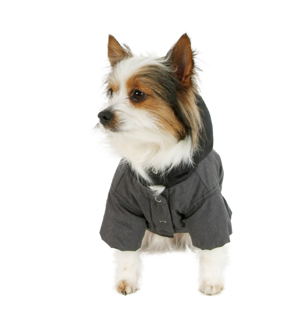 Se zateplenou kapucí, která v mrazu kryje krk pejska a při dešti chrání hlavu před deštěm