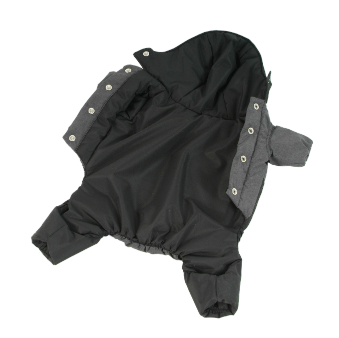 Kombinéza pokrývá celou část těla psa včetně nožiček, je hřejivá a nepromokavá