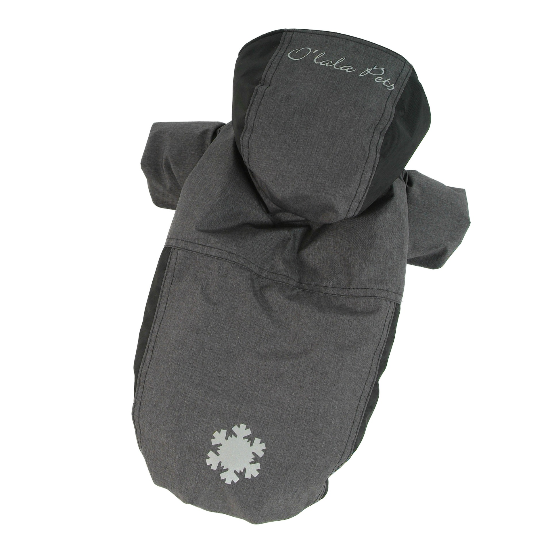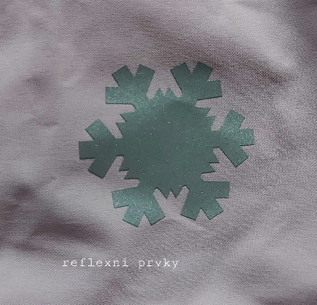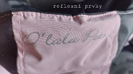 Na kombinéze na zádech REFLEXNÍ výšivka vločky, na kapuci reflexní výšivka Ó lala pets