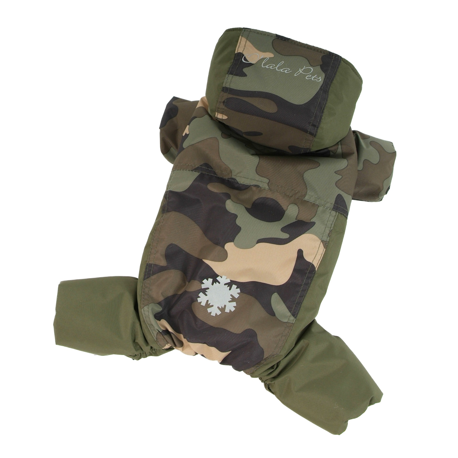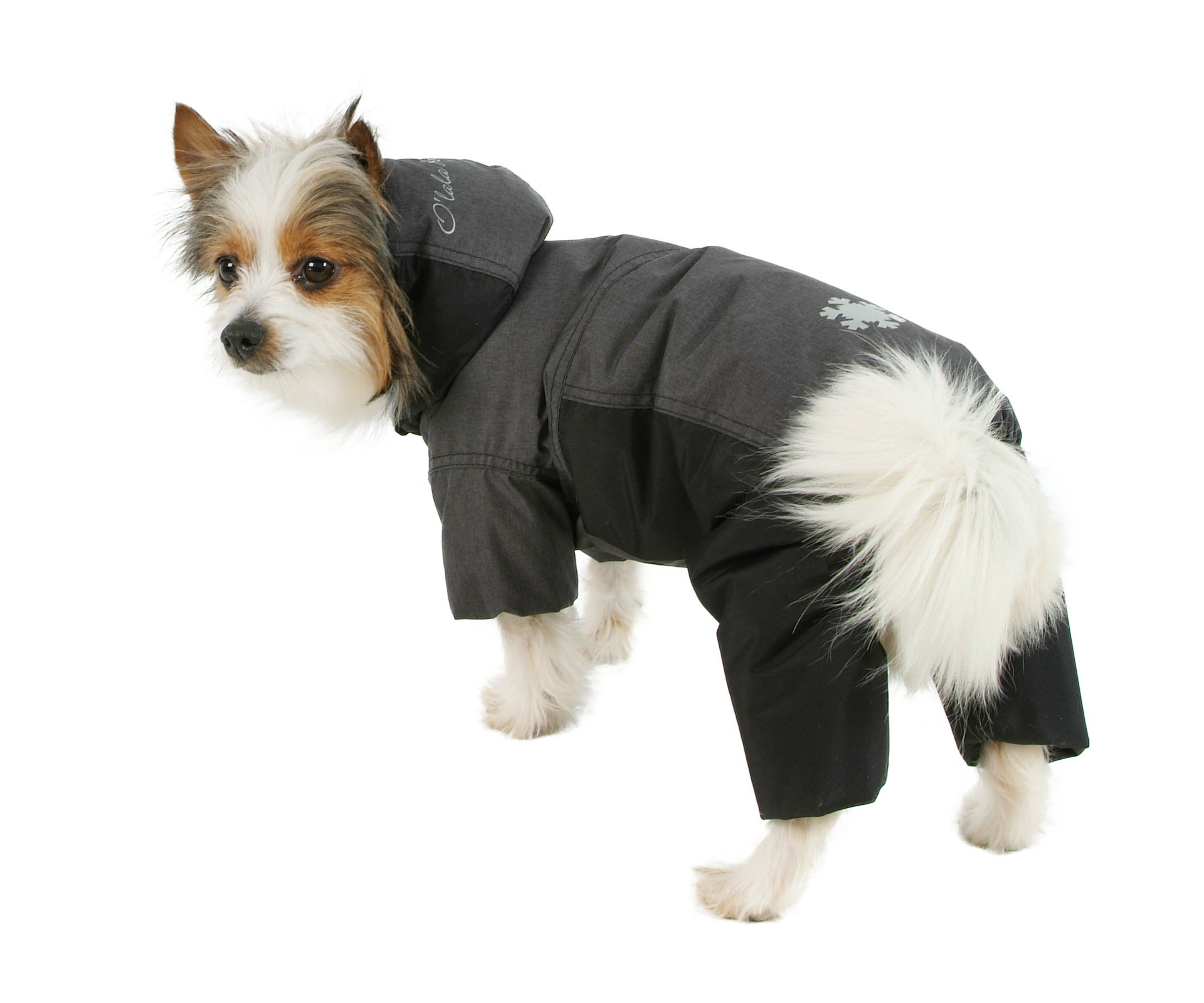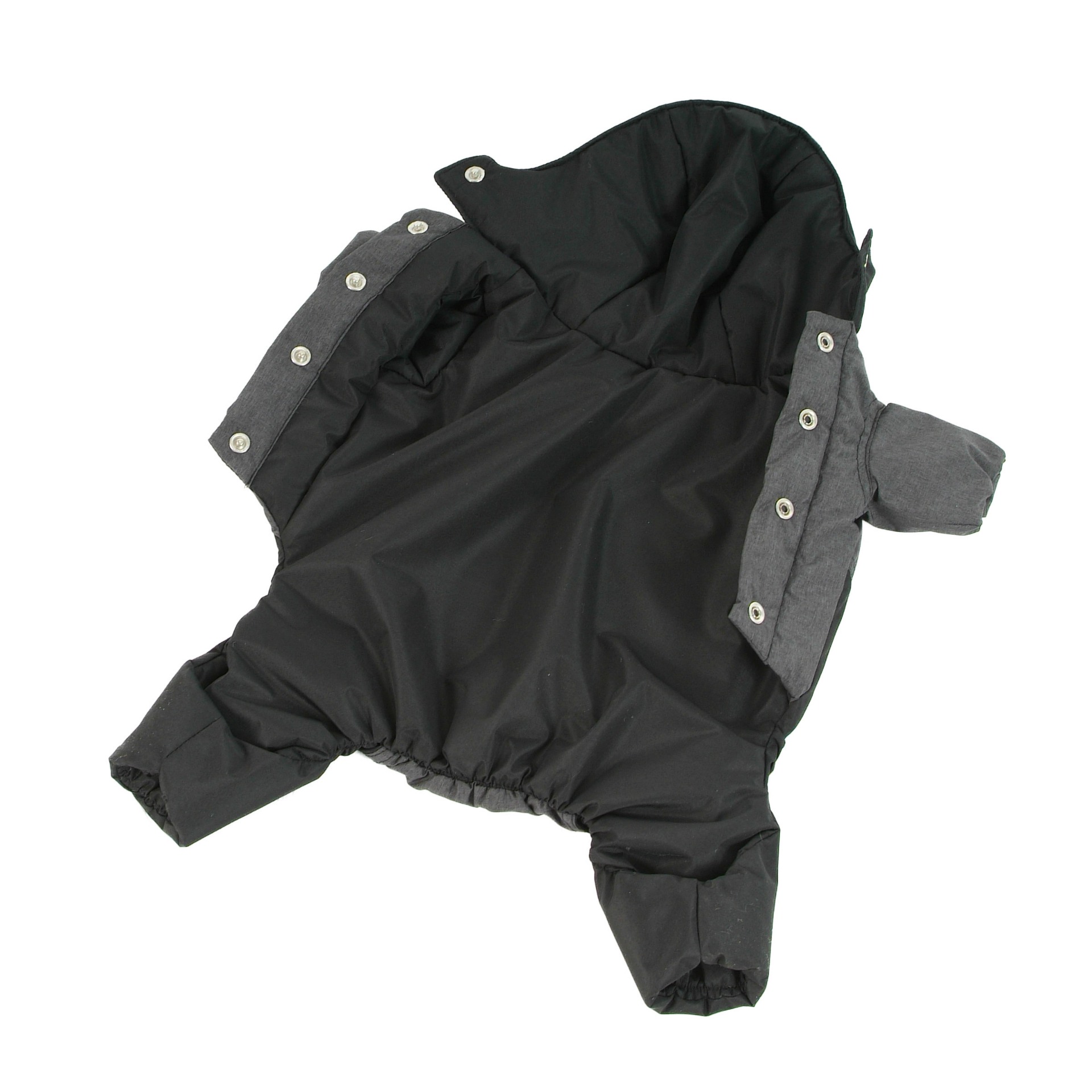 Kombinéza kryje všechny nohy pejska, který je dokonale v suchu a teple i v tom největším mrazu