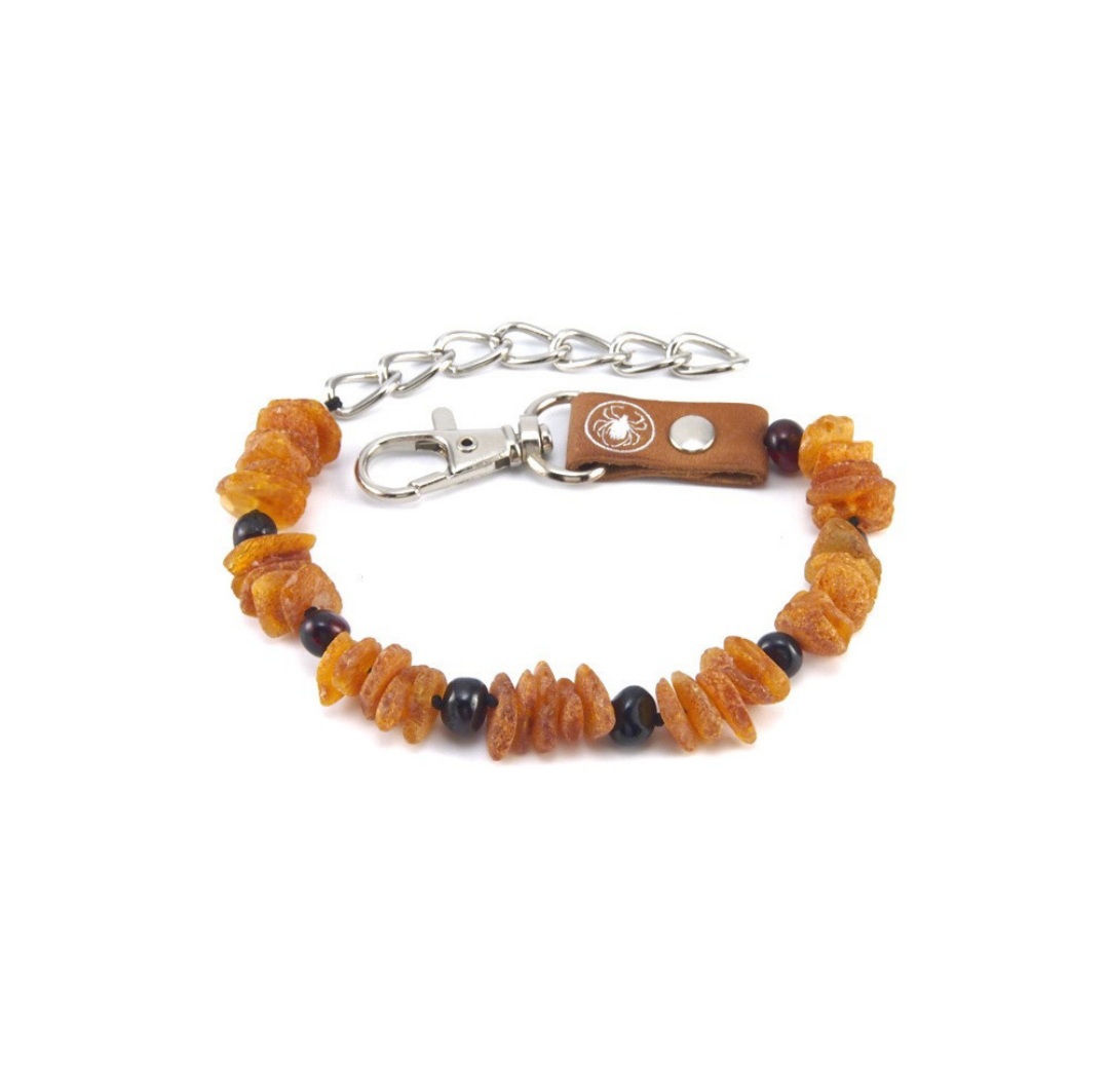 Obsah balení: 1 ks jantarový obojek s koženou přezkou, nerezovým řetízkem a karabinou, český návod k použití