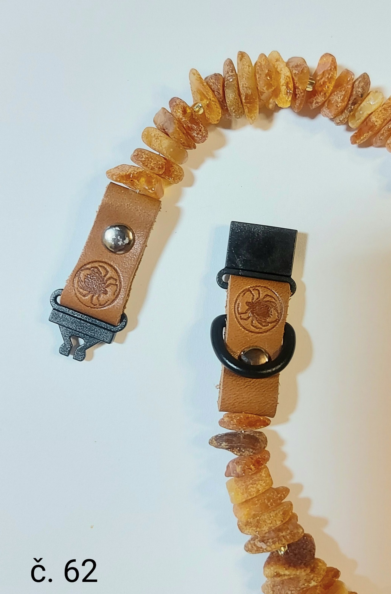 Antiparazitní PŘÍRODNÍ jantarový obojek z PRAVÉHO baltského surového neleštěného jantaru spolehlivě účinkuje proti klíšťatům, blechám a jiným parazitům