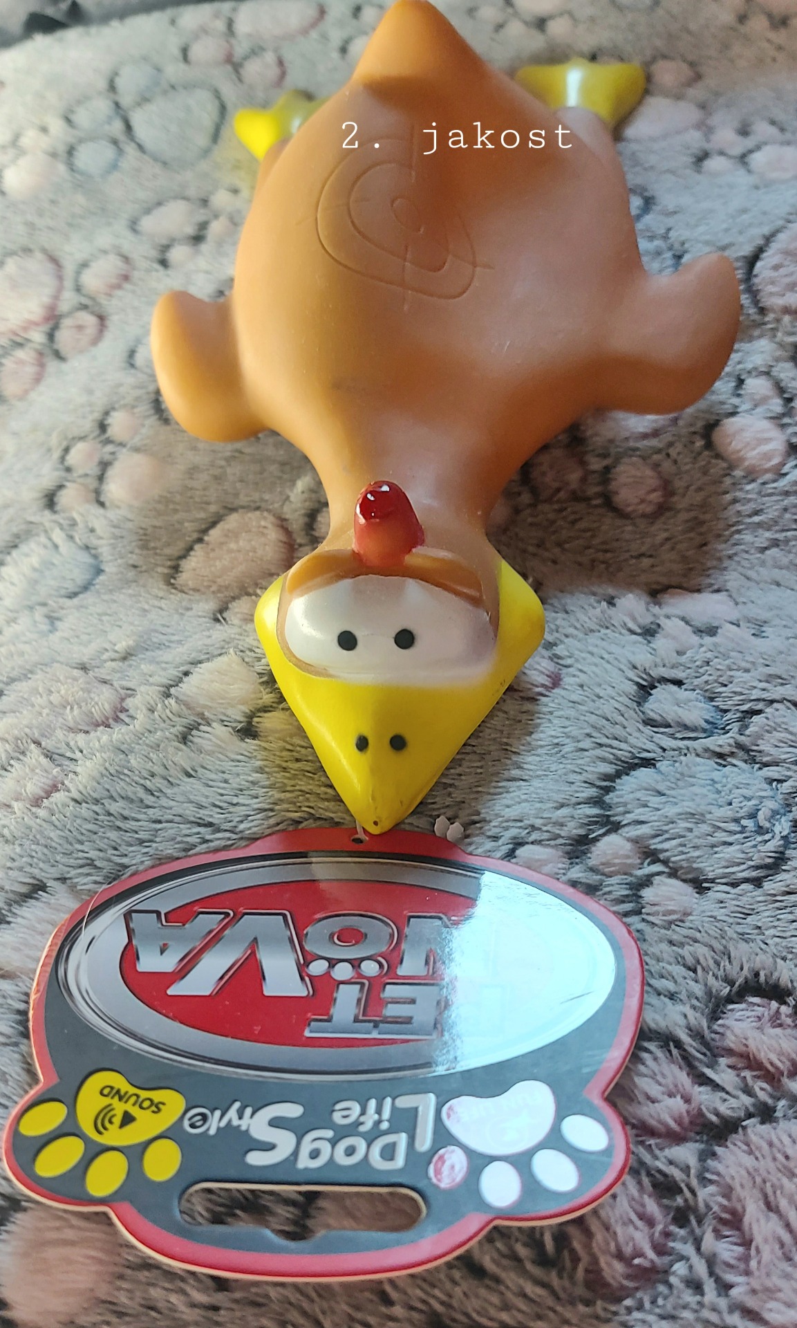 1 ks 2. jakost - kuře je na bříšku trošku promáčklé, jinak píská a je funkční (viz fotogalerie)