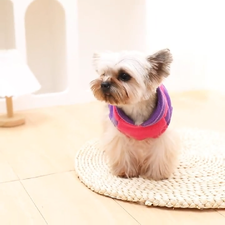 Materiál je stálobarevný, pratelný na 30 st. v pračce nebo na ruční praní, nežmolkuje, je pružný, přizpůsobí se tvaru těla psa
