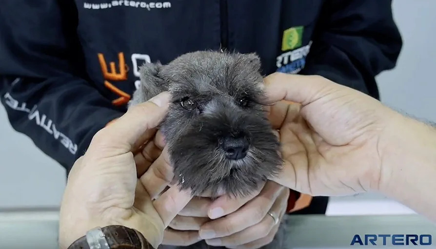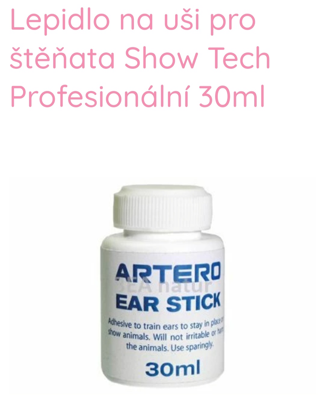 Štěňátka mají měkká, visící ouška. Postupem času chrupavka v ušním boltci ztvrdne a začne stoupat. Bohužel tomu tak není vždy a tady pomůže lepidlo Artero ShowTech. Uši mladých psů se lepí, když se tvoří chrupavka, tj. kolem 3 měsíců věku