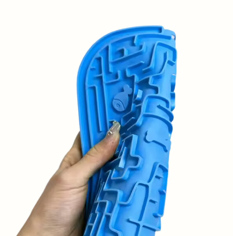 Tato podložka zajistí, že pejsek musí vynaložit větší usilí, snaží se olizovat jídlo z podložky, tím produkuje více slin a podporuje tak své trávení