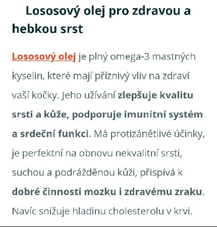 - Lososový olej je zdrojem látek, které podporují krásnou srst