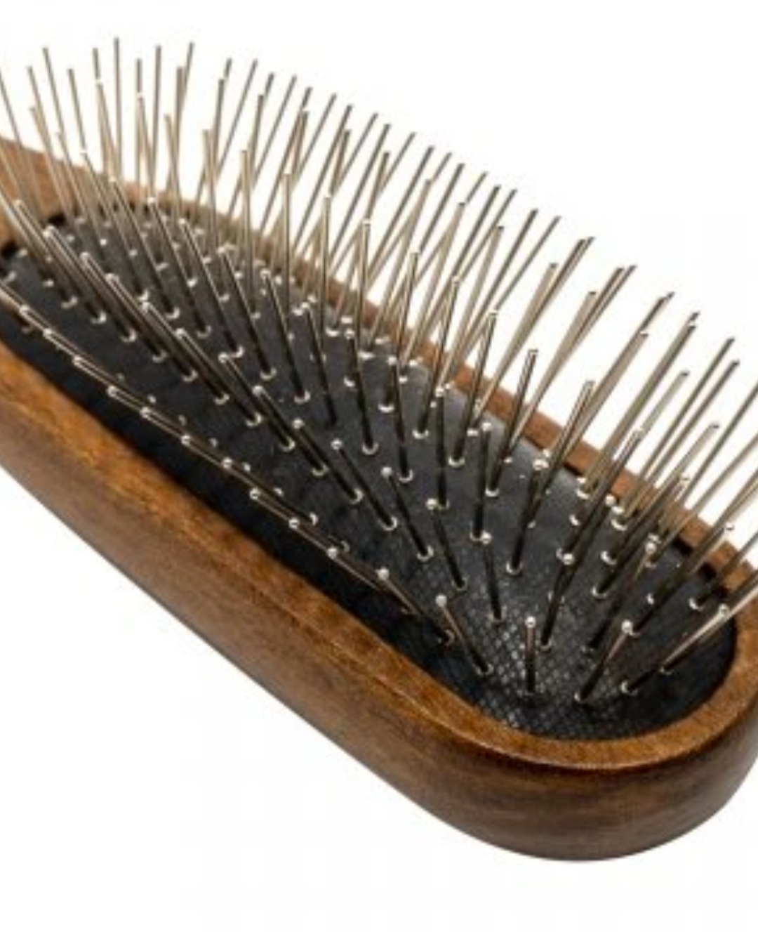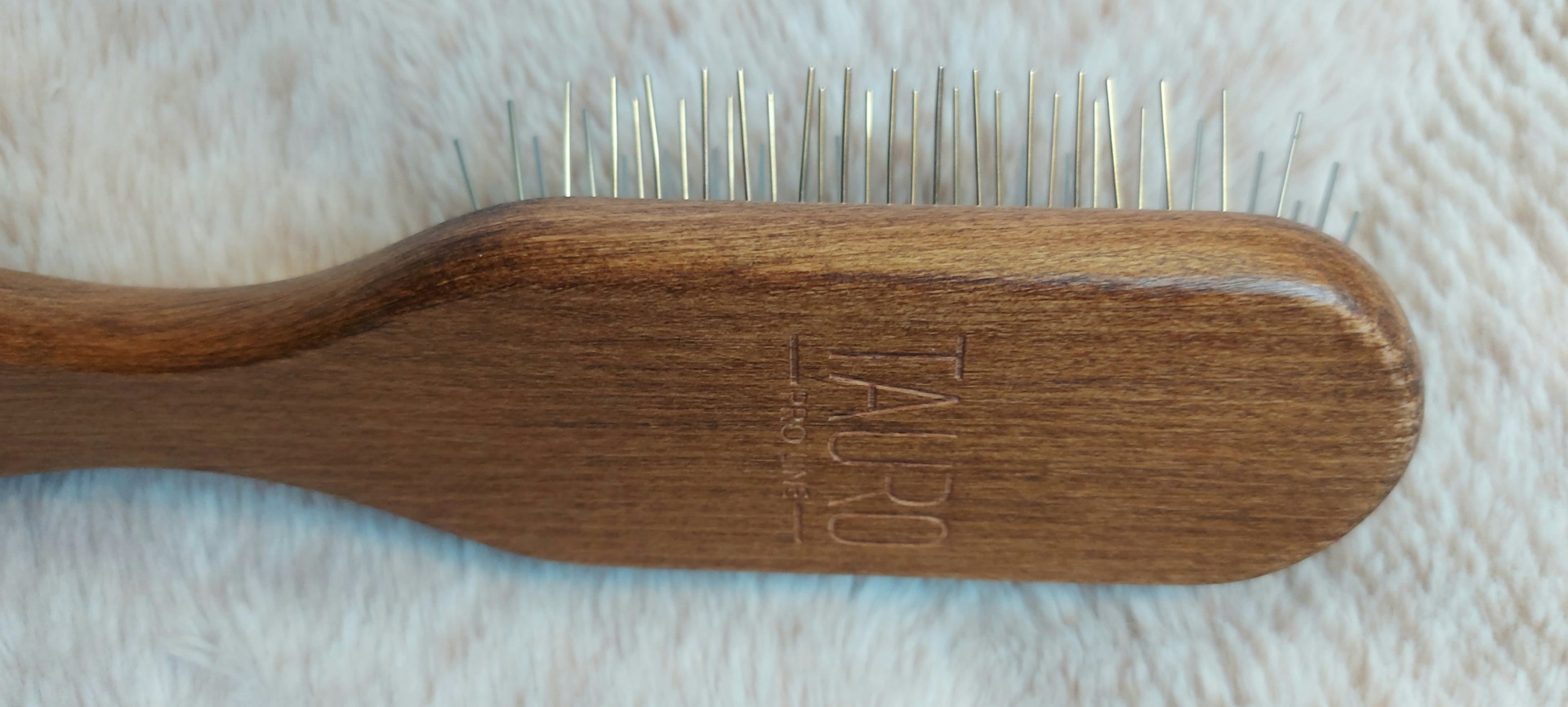 Profesionální kartáč Tauro DeLuxe SILVER Groomer s dřevěnou násadou a je určen pro účinnou péči o dlouhosrsté psy a kočky
