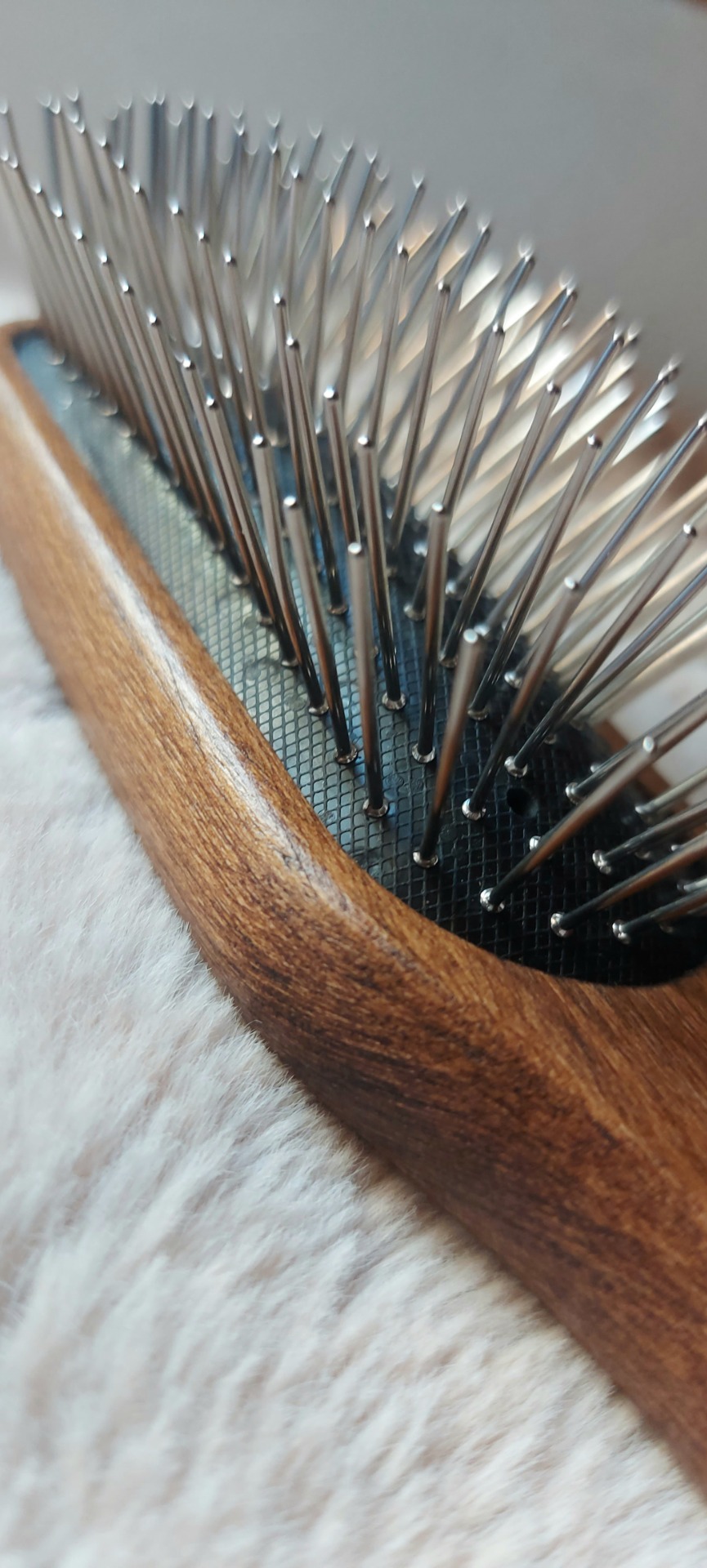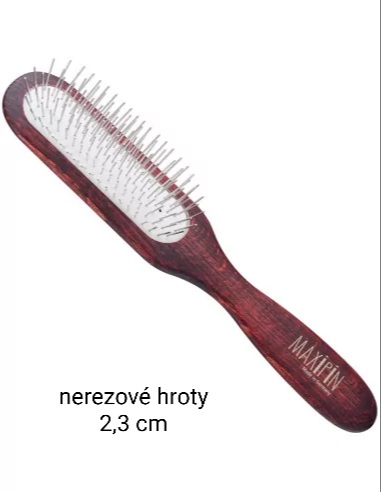 Kartáč se speciálním kvalitním provedením dřeva v kombinaci s pevnými a šetrnými extra dlouhými nerezovými hroty 2,2 cm pro bezproblémové rozčesávání i hodně zacuchané srsti