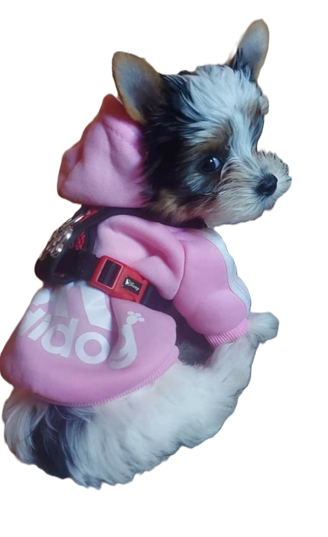 Doporučuji přes mikinu dát postroj (postroje zde v nabídce na webu), lépe obepne bříško a bude chránit štěňátko před chladem a vlhkem