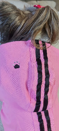 Mikina je pružná díky vláknu Lycra a pohodlně se obléká přes hlavu,má kapsu na zádech, kapuci s elegantní výšivkou tlapky