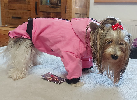 Příjemný materiál na tělo pejska, uvnitř česaná bavlna, vhodné i do chladného nepříznivého počasí