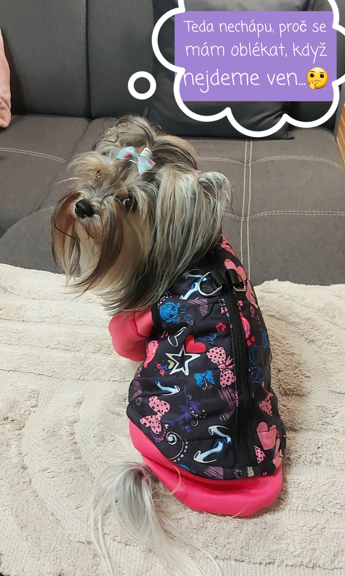 Nezapomeňte, že pejsek je neustále v pohybu, tudíž vestu přes mikinu dávejte jen dle počasí, pokud se ochladí nebo prší