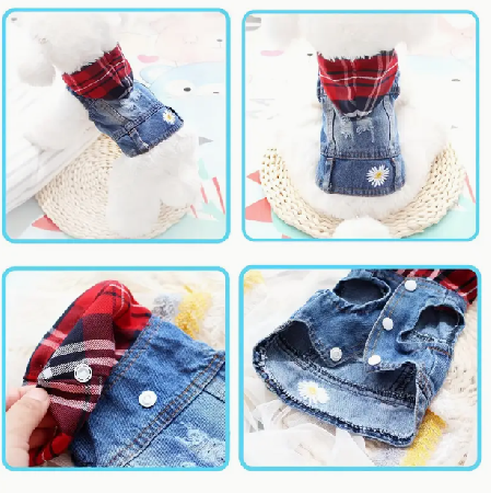 Vhodná i při dešti, klasický materiál 100% bavlna jeans je silný a hned tak nepromokne, na venčení a vycházky ideální