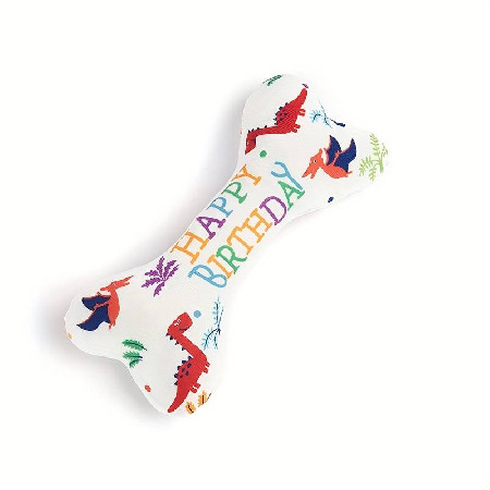Narozeninová pískací kost Happy Birthday pro radost všech pejsků z kvalitního materiálu, který je příjemný na omak