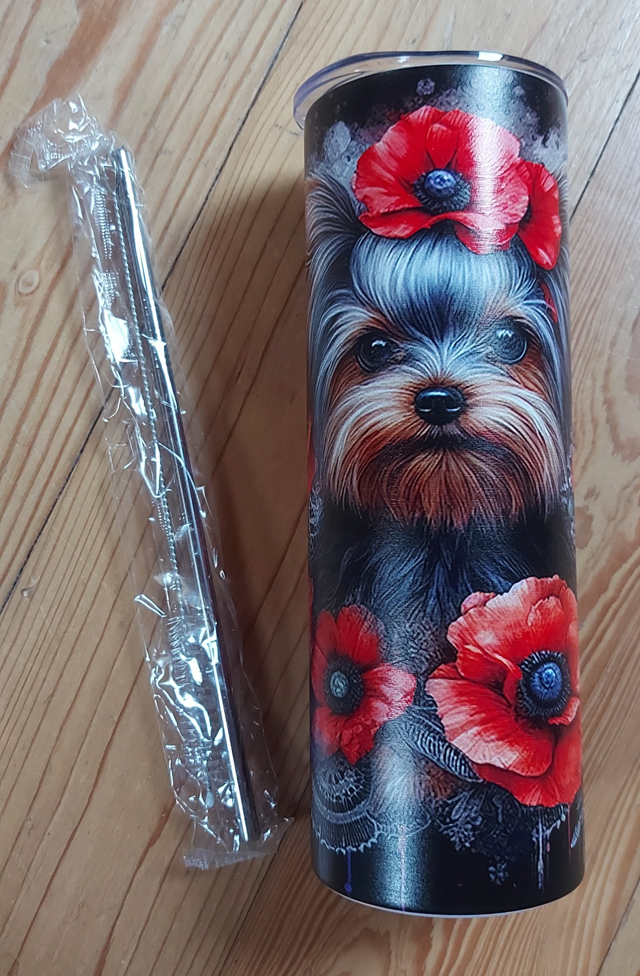 Termohrnek z kvalitní nerezové oceli s odolným, trvanlivým potiskem Yorkshire terrier potěší každého majitele pejska