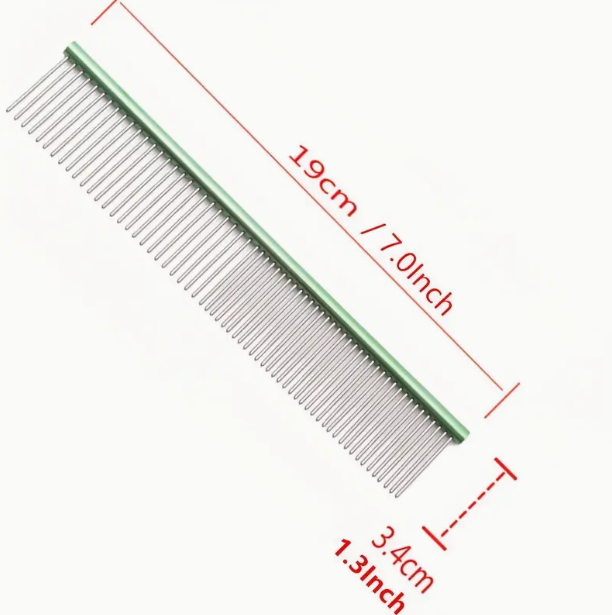 Hřeben má smíšenou rozteč zubů, zaoblená rukojeť umožňuje pohodlné česání, navíc má hřeben zaoblené konce, takže nedráždí kůži psa