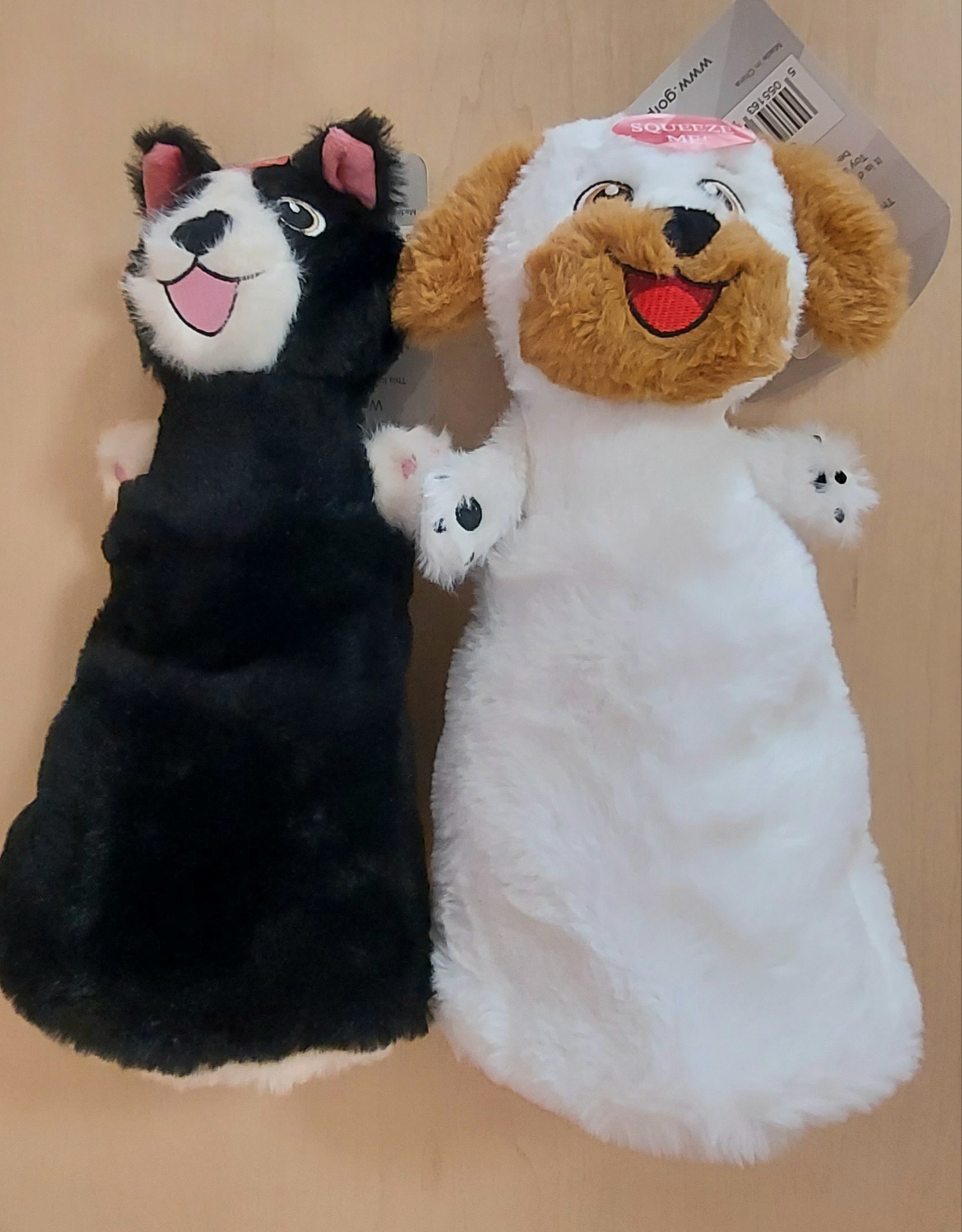 Pískací zařízení v každé hlavě - při zmáčknutí hlavy plyšové zvířátko píská a provokuje psa ke hře a kousání