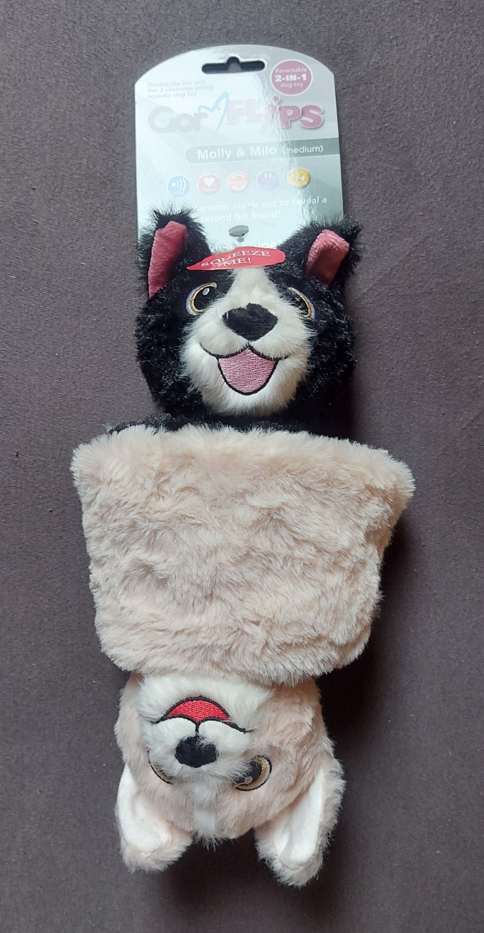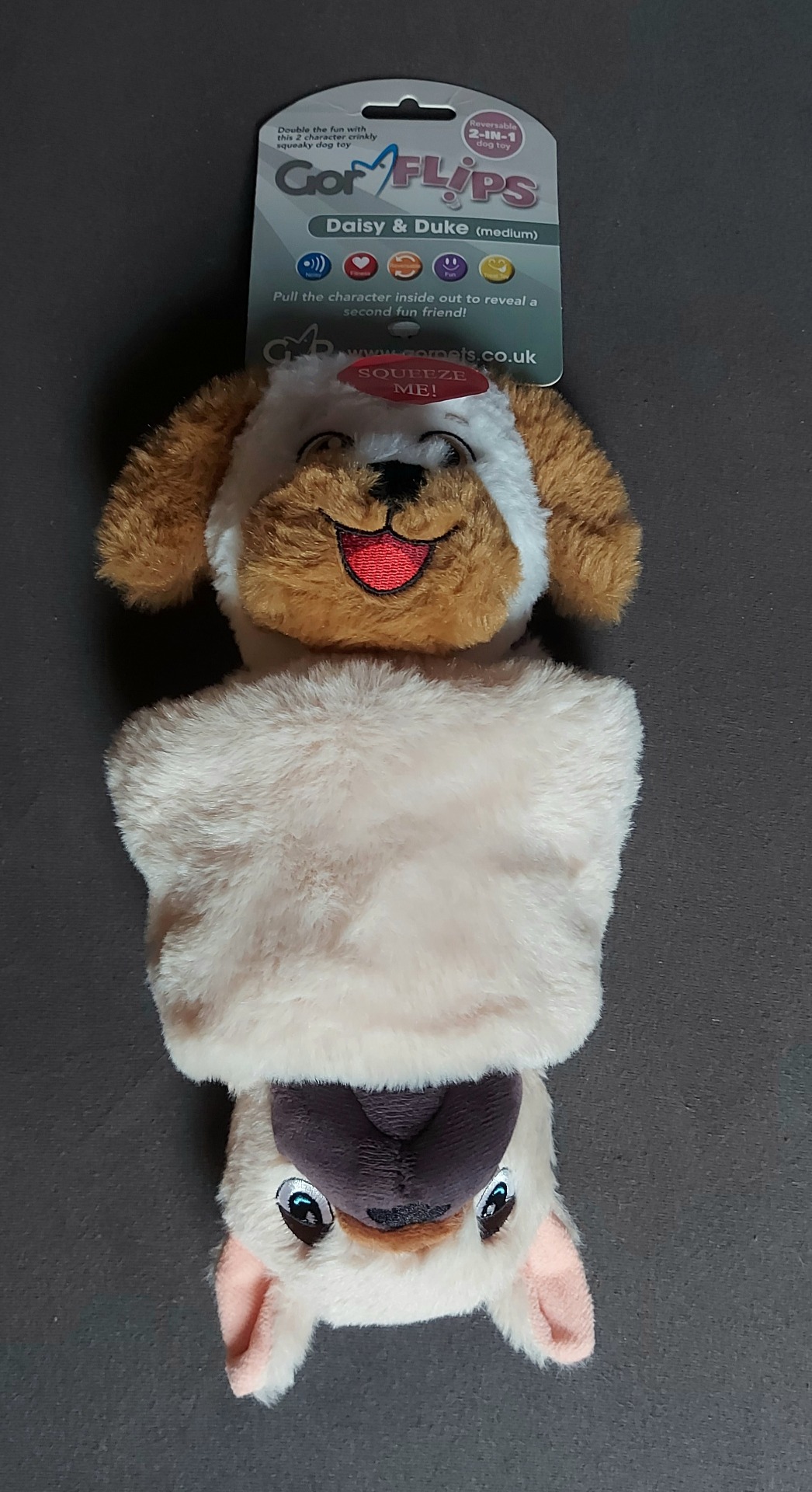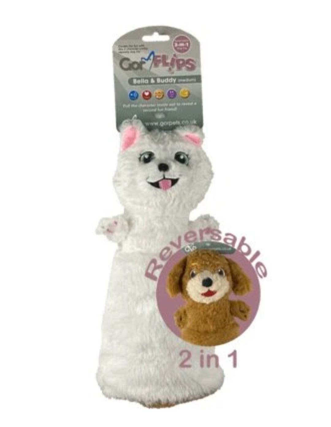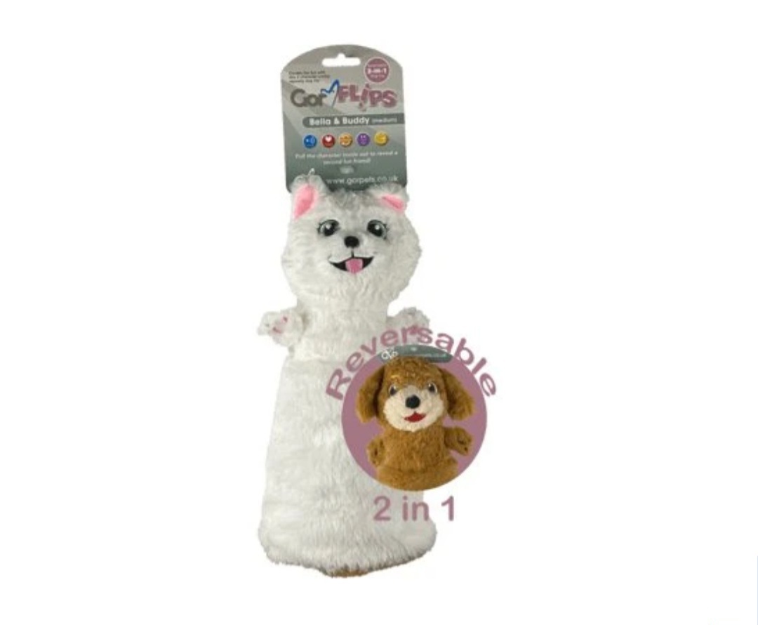 Gor Flips jsou vyrobené z měkké plyšové látky, nabízí Vašemu pejskovi hned dva plyšové mazlíčky v jednom!