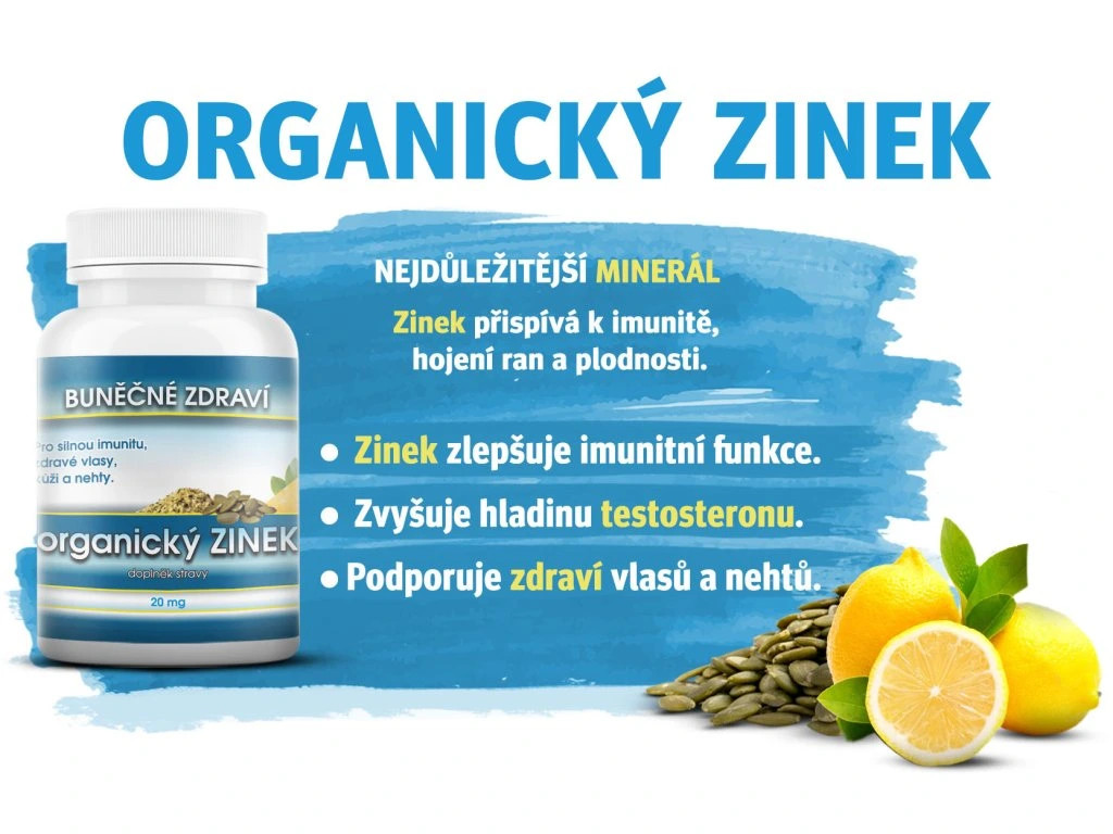 ZINEK je spolu s hořčíkem jedním z nejdůležitějších minerálů pro náš organismus a jeho účinky jsou pro reakce v těle nenahraditelné. Podílí se na aktivitě přibližně tří set enzymů a tedy i tří set biochemických reakcí, včetně produkce inzulinu, testosteronu a růstového hormonu. Přispívá i ke správné funkci imunitního systému a pomáhá urychlovat hojení ran