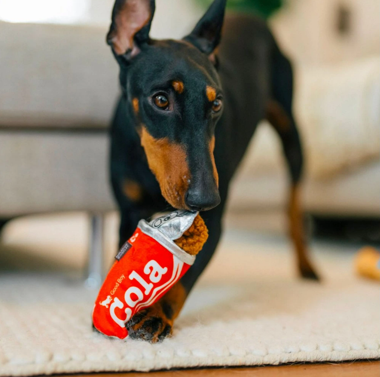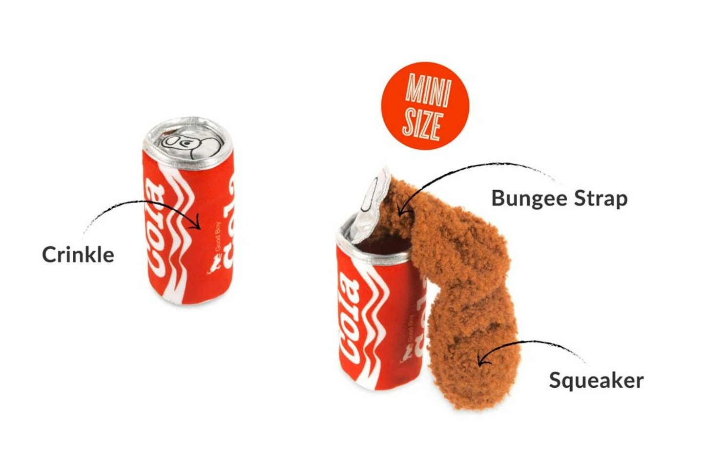 P.L.A.Y. Plyšová pískací a šustící hračka pro psy a štěňata Cola Mini