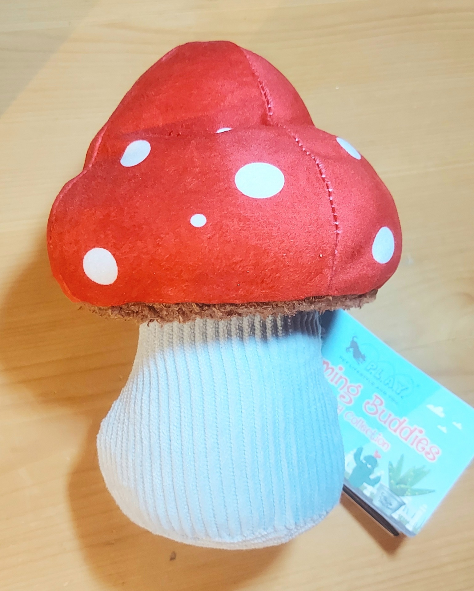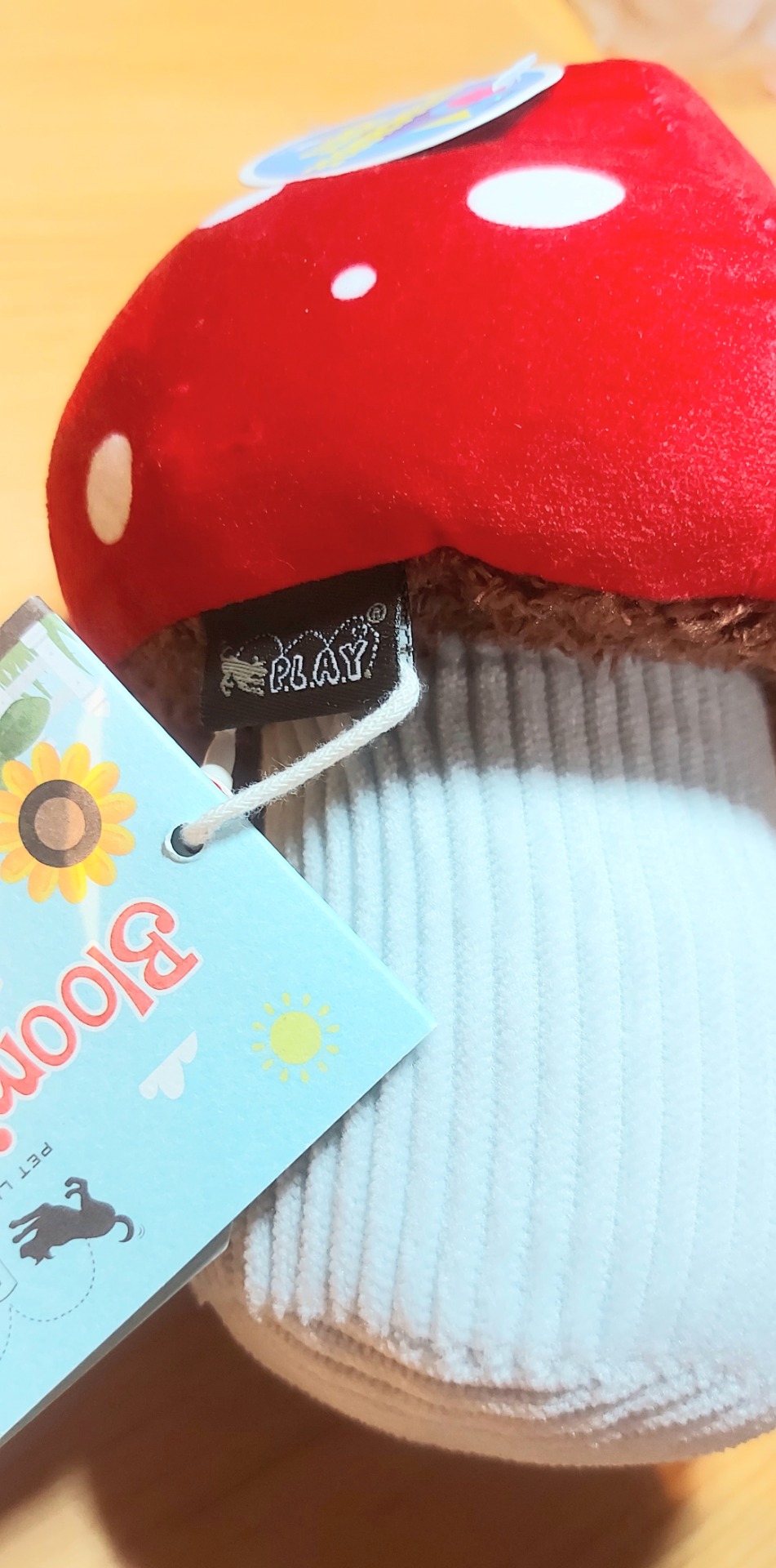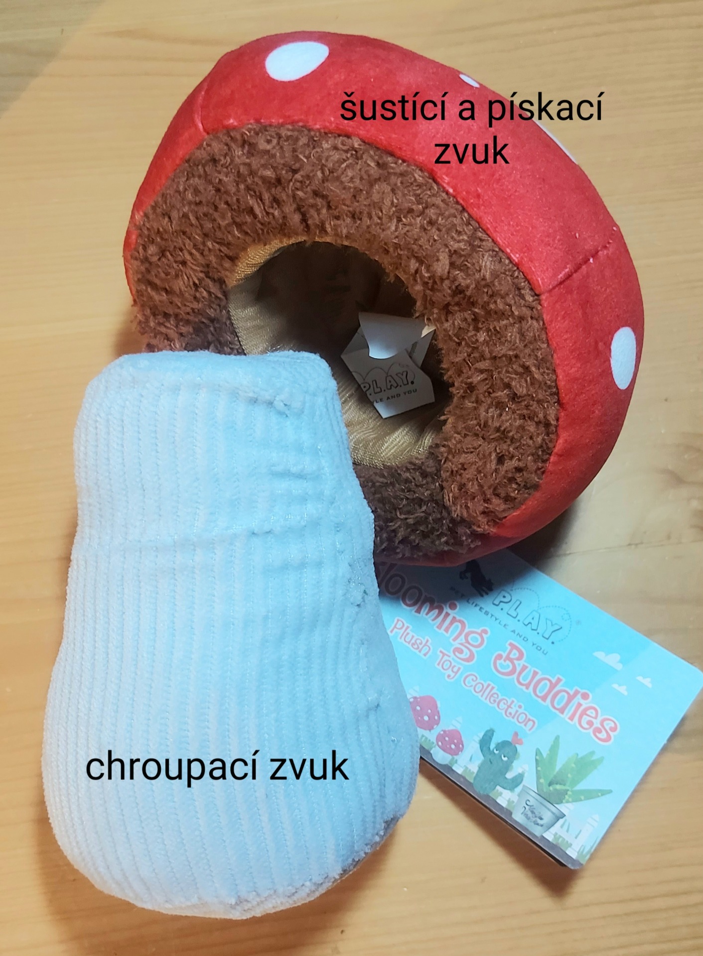 P.L.A.Y. Plyšová pískací, chroupací a šustící hračka pro psy a štěňata Muchomůrka