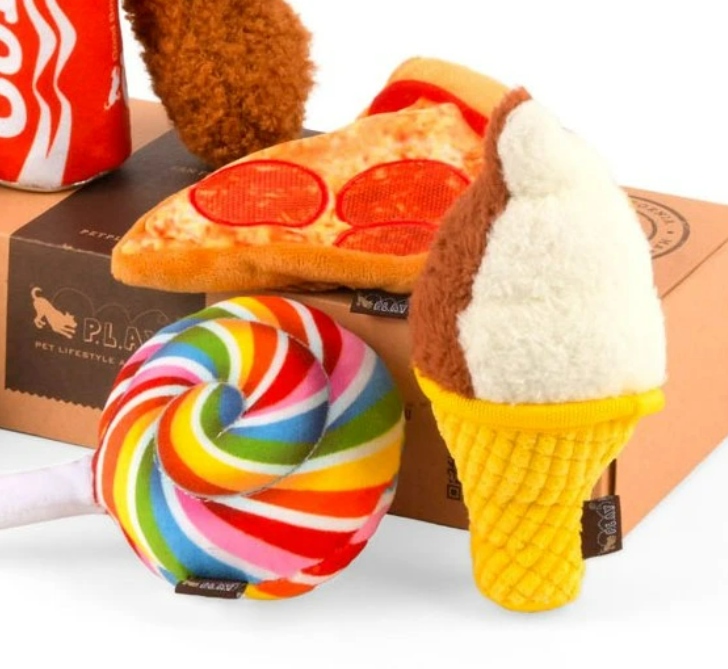 Každý den teď bude cheat day! Oslaďte život Vašemu pejskovi s originální kolekcí plyšových hraček Snack Attack od kalifornské značky P.L.A.Y.