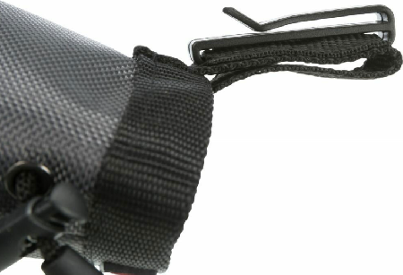 Pomocí klipu se dá připnout k opasku. Pamlsovník se jednoduše uzavře pomocí šňůrky