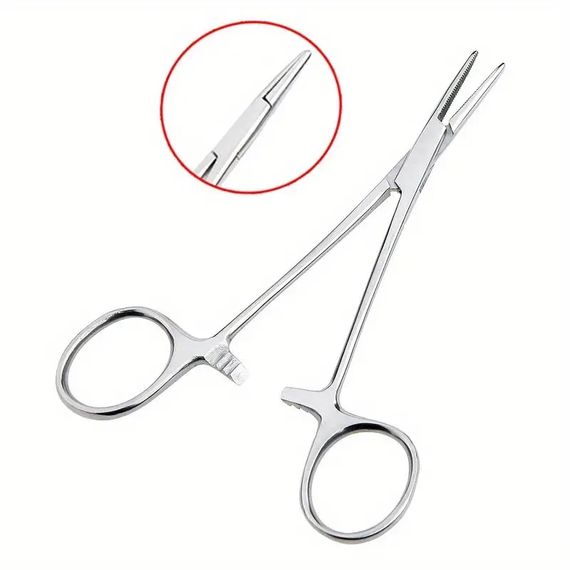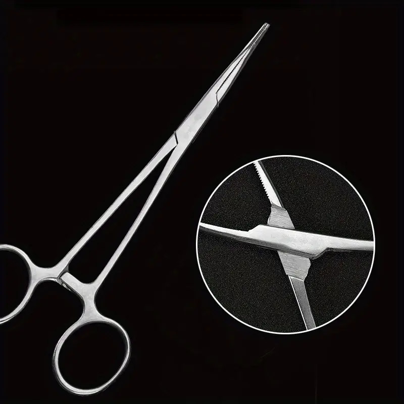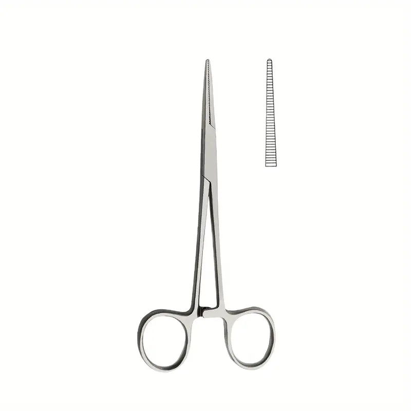 Rovný kvalitní nerezový chirurgický pean dlouhý 12,8 cm pro šetrné a bezbolestné odstranění chloupků v uších psů a štěňat