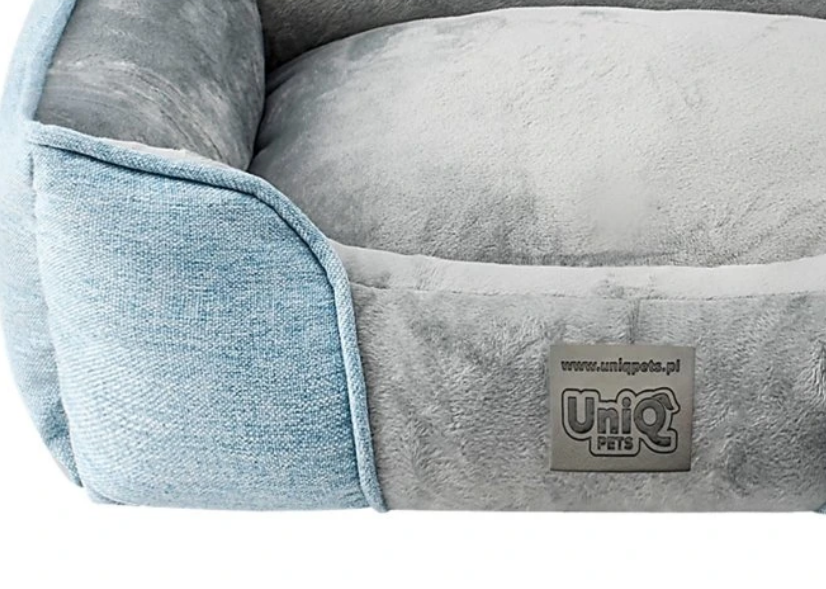 Pelíšek je vyrobený z hebkého materiálu v praktické modro - šedé kombinaci