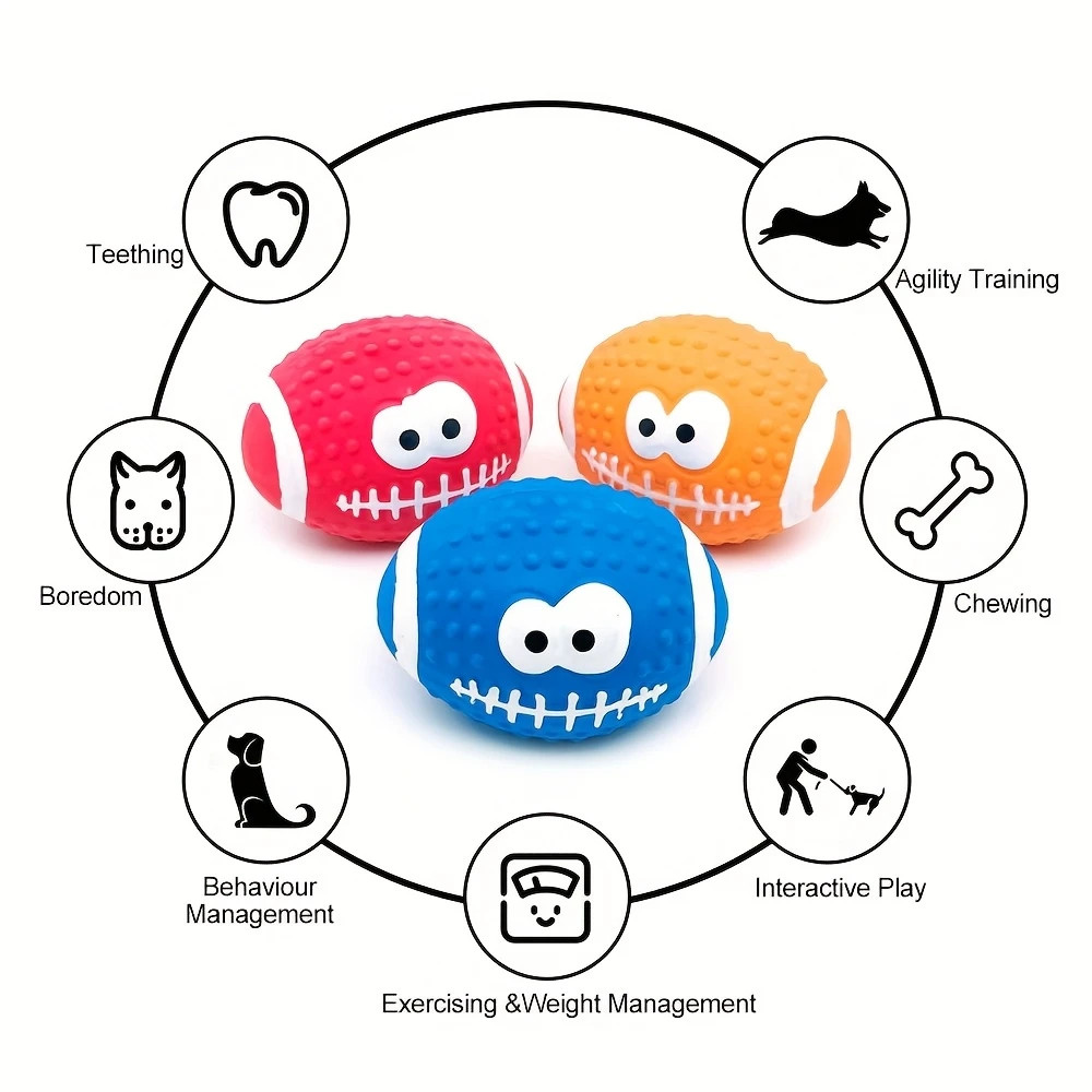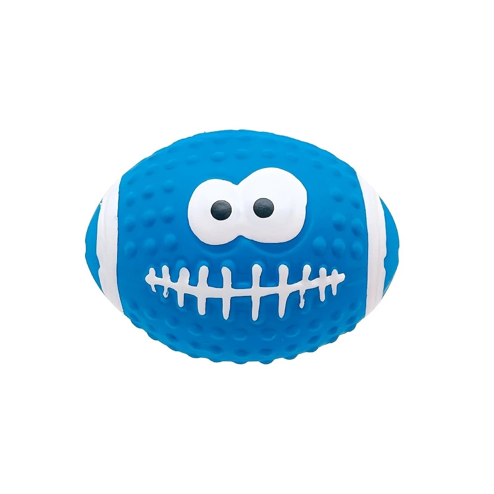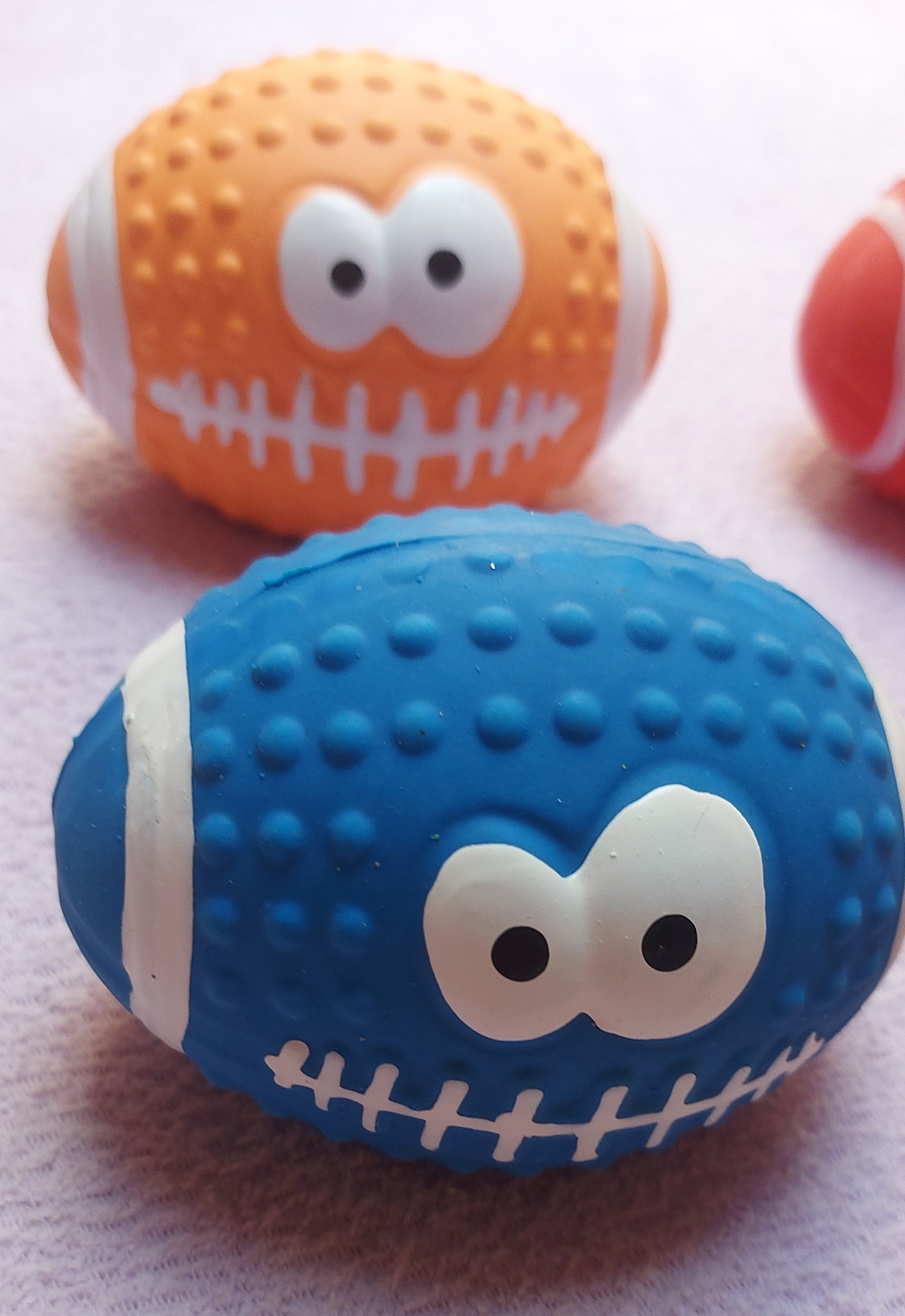 Pískací hračka z PŘÍRODNÍHO LATEXU v designu rugby míče zaujme každého pejska!