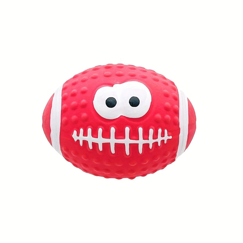 Latexový červený rugby míč je vhodný pro každého pejska, který miluje pískací zábavu