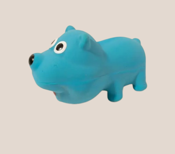 Hračka ve tvaru modrého medvěda je vyrobena z PŘÍRODNÍHO LATEXU, který je pro psa zdravotně nezávadný, netoxický, odolný a bezpečný, je ideální hračkou pro psy a štěňata menších a středních plemen