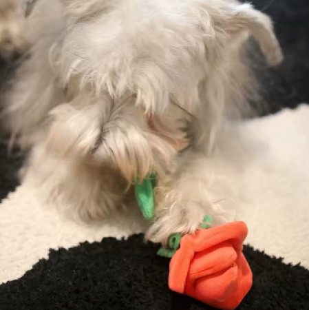 Odměňte Vašeho čtyřnohého parťáka touto roztomilou růží. Váš pes ji může používat jako hračku, protože je vyrobena z příjemného hebkého plyše
