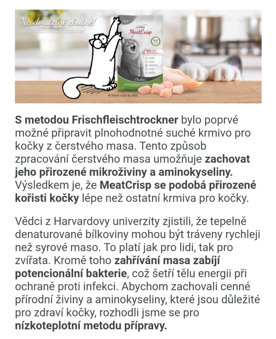 MeatCrisp je první zdravé plnohodnotné krmivo pro koťata a dospívající kočky ze sušeného čerstvého masa