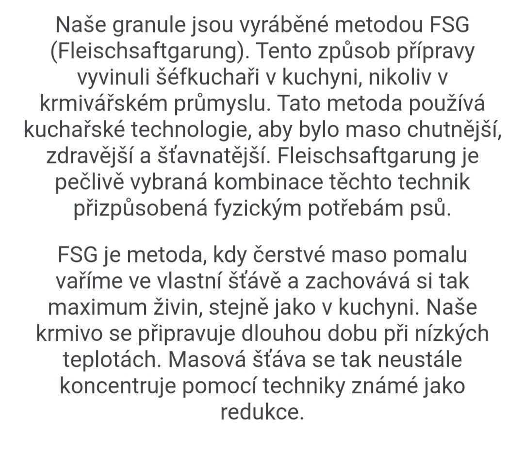 Vysoký podíl šťavnatého masa a kvalitních surovin zajišťuje chutnost a dobrou stravitelnost