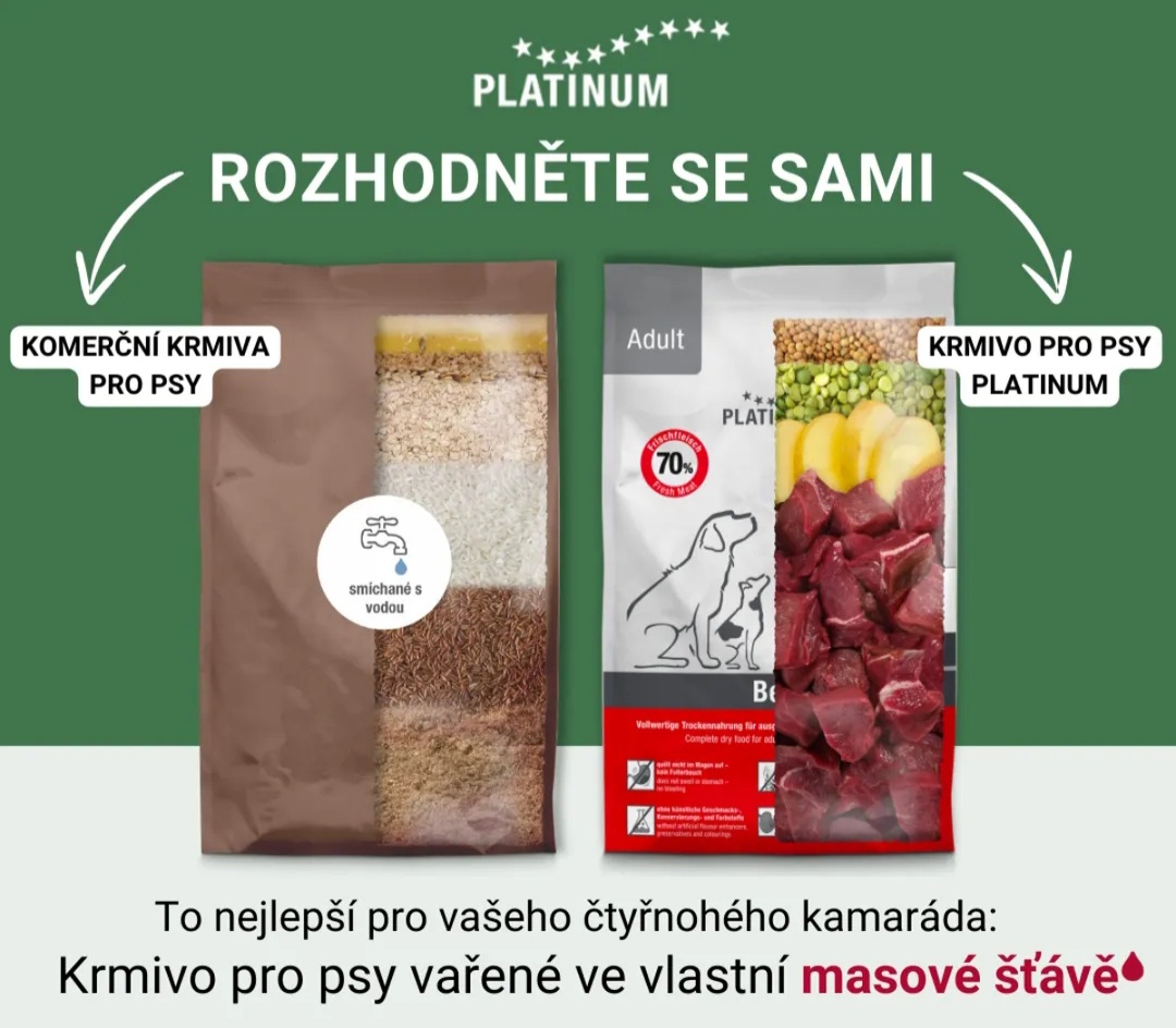 Krmná směs je pouze krátce tepelně upravena bez přidání vody a následně šetrně sušena a lisována. Tato technologie umožňuje ponechat v granulích 18% původní masové šťávy, která dělá z Platinum Vetactive Senior jedinečně chutné a šťavnaté krmivo. Vůni a chuť masových granulí PLATINUM si Váš pes jistě zamiluje!