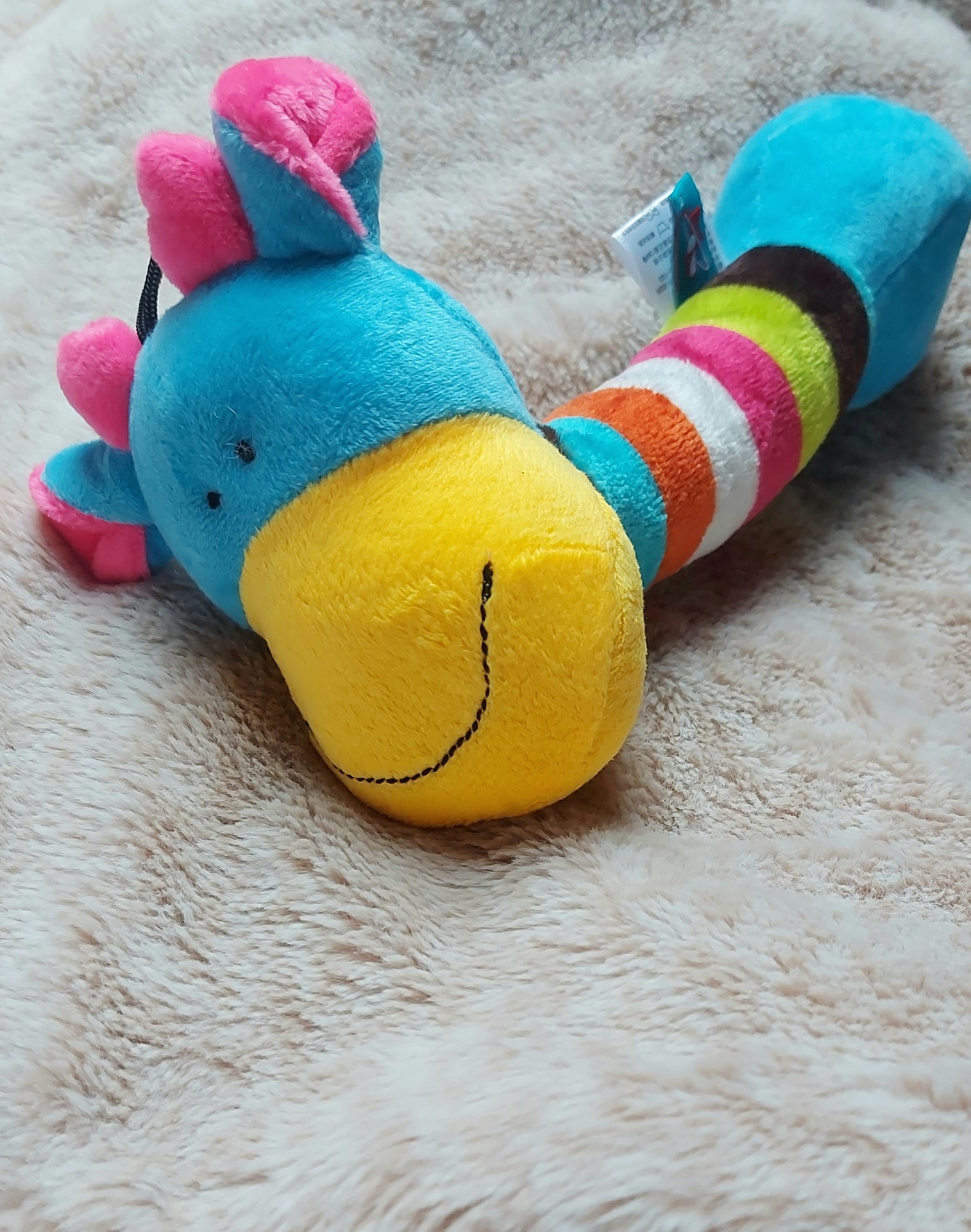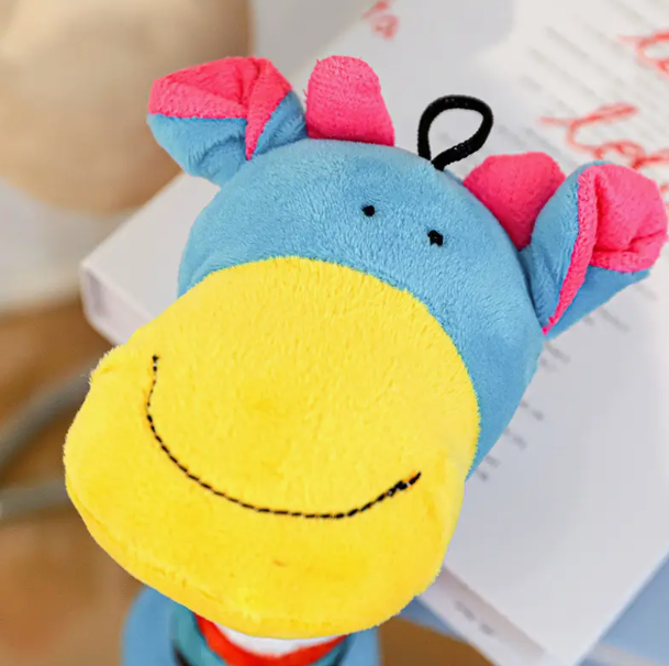 Žirafa má i poutko pro uchycení např. na kočárek pro psa nebo ohrádku pro štěňata