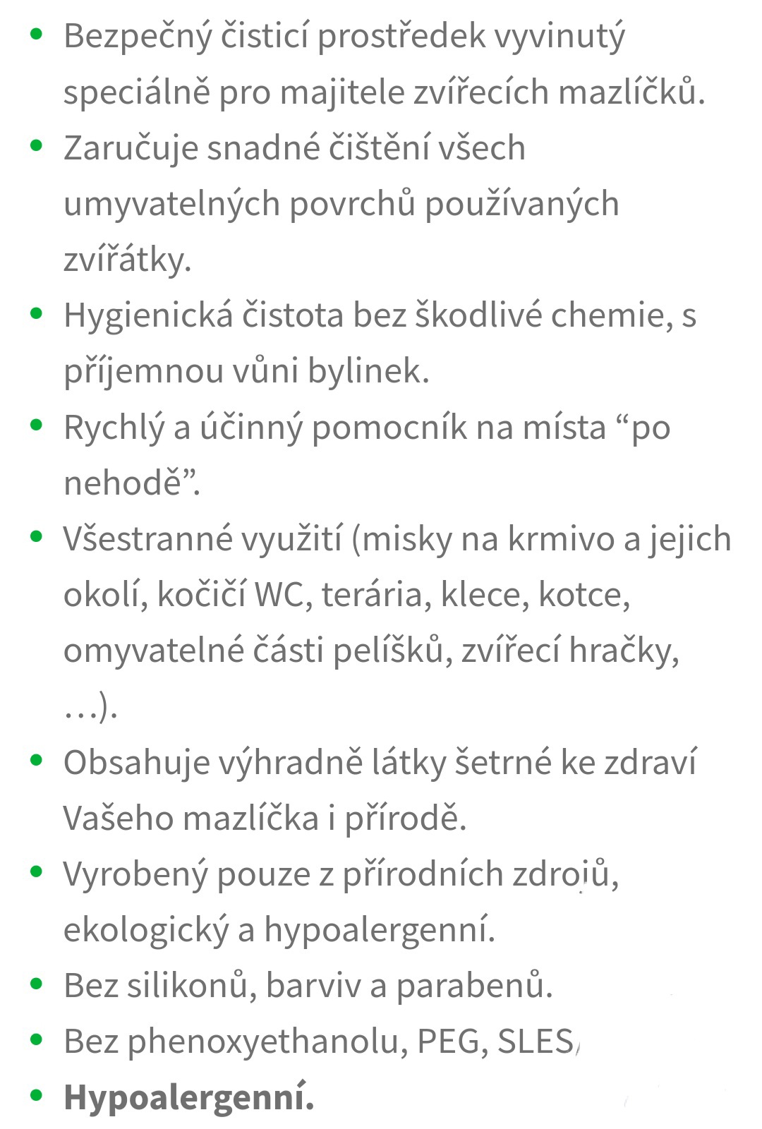 Obsahuje výhradně látky šetrné ke zdraví Vašeho mazlíčka i přírodě