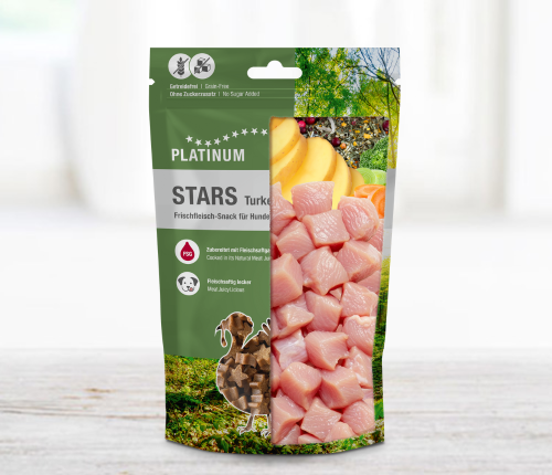 Platinum STARS Turkey je svačinka pro psy připravená z čerstvého masa – ideální pro výcvik i za odměnu