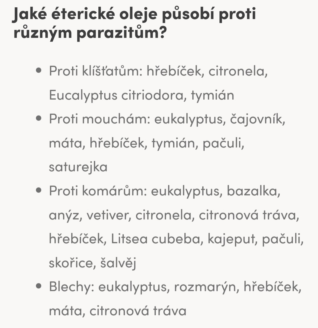 Působí preventivně proti PARAZITŮM obsahuje repelentní přírodní složky